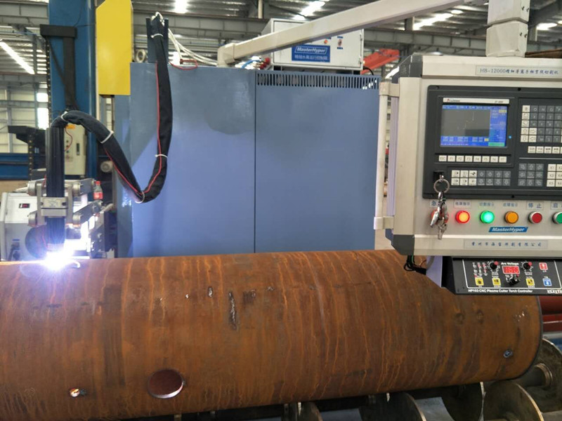 1.數(shù)控火焰相貫線切割機(jī) ,機(jī)型代表有常州市海寶焊割有限公司HB12000S系列。切割具有大厚度碳鋼 不銹鋼 鋁合金切割能力,切割費(fèi)用較低,但存在切割變形大,切割精度不高,而且切割速度較低,切割預(yù)熱時(shí)間、穿孔時(shí)間長,較難適應(yīng)全自動化操作的需要。它的應(yīng)用場合主要限于碳鋼、大厚度板材切割,在中、薄碳鋼板材切割上逐漸會被等離子切割代替。